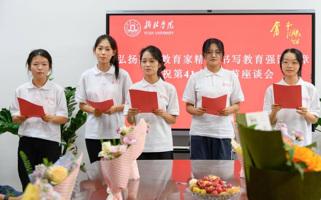 秋韵盎然,桃李芳菲。榆林学院教育学院的教师们在第41个教师节座谈会上欢聚一堂。围绕“教育家精神”,大家畅叙育人心得,烛照教育初心,共同擘画立德树人的美好未来。本次座谈会由学院党总支副书记加楠主持。