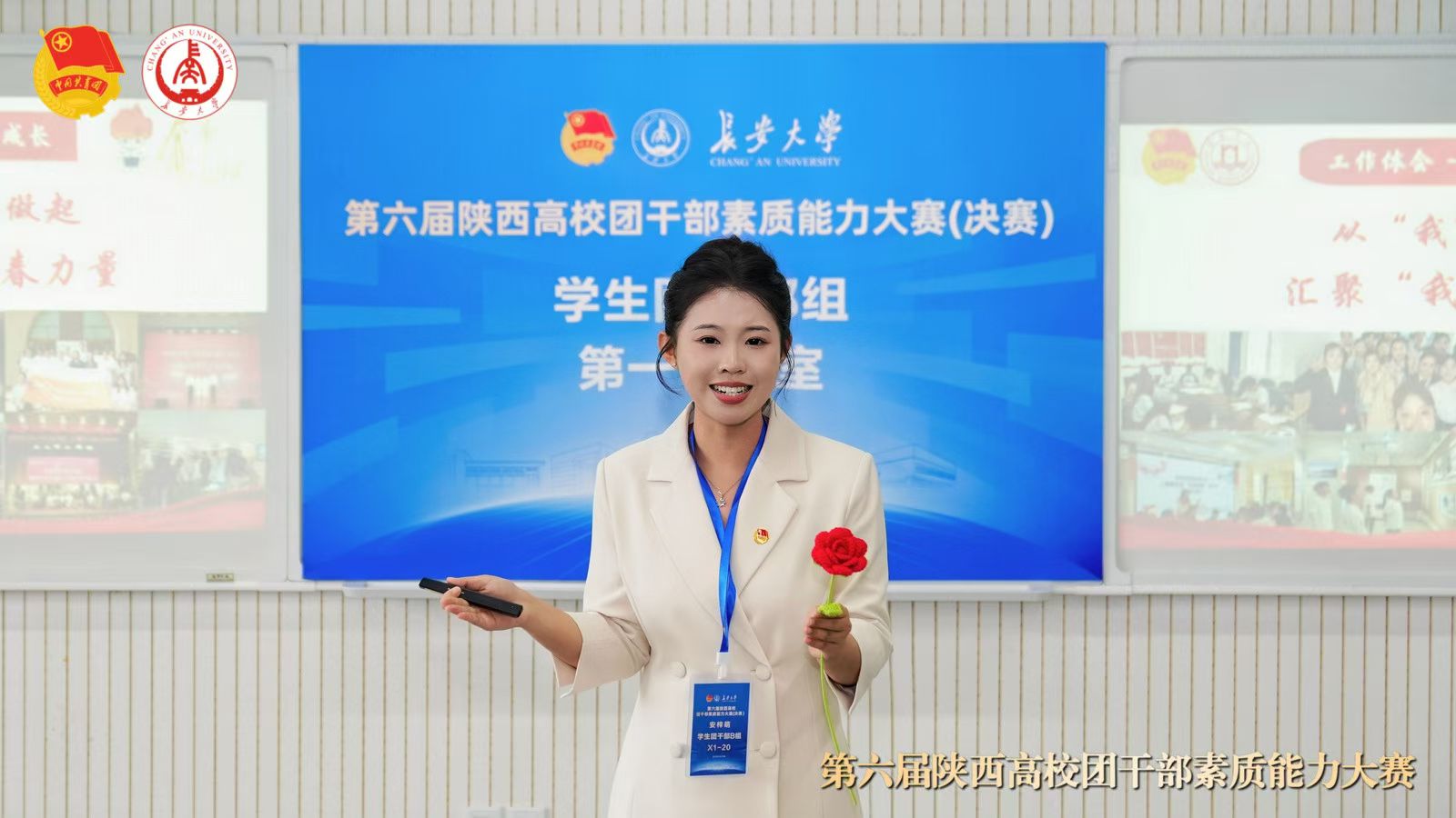 10月12日,由共青团陕西省委、中共陕西省委教育工委联合主办的第六届陕西高校团干部素质能力大赛总决赛暨颁奖仪式,在长安大学渭水校区圆满落幕。我院23级小学教育专业团支部书记安梓萌,凭借扎实深厚的理论素养、亮眼卓越的实践能力与从容沉稳的现场表现,于全省众多参赛选手中脱颖而出,成功斩获“学生团干部组”一等奖。充分彰显我院团干部队伍的育人成效与青春风采。