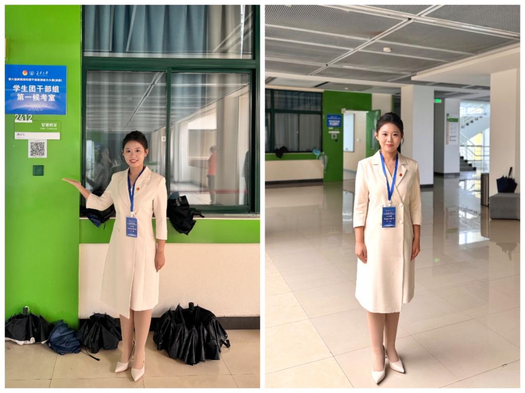 省赛现场,安梓萌凭借扎实的专业功底、过硬的综合素养与昂扬向上的精神风貌,展现出我院团干部的优秀风采。面对团课内容评审、现场话题讨论等多环节考核,安梓萌同学以娴熟的团务工作能力从容应对,紧密结合学校共青团工作实践精准输出专业见解。她以青春视角讲述基层团干履职故事,用真挚情感传递新时代青年心声,用务实行动诠释团干部的责任担当。其在赛场上的每一次精彩发挥,不仅彰显了我校团干部队伍的过硬素质,更充分体现了教育学院在团干部培养工作中的扎实成效,赢得评委与在场观众的广泛认可与高度评价。