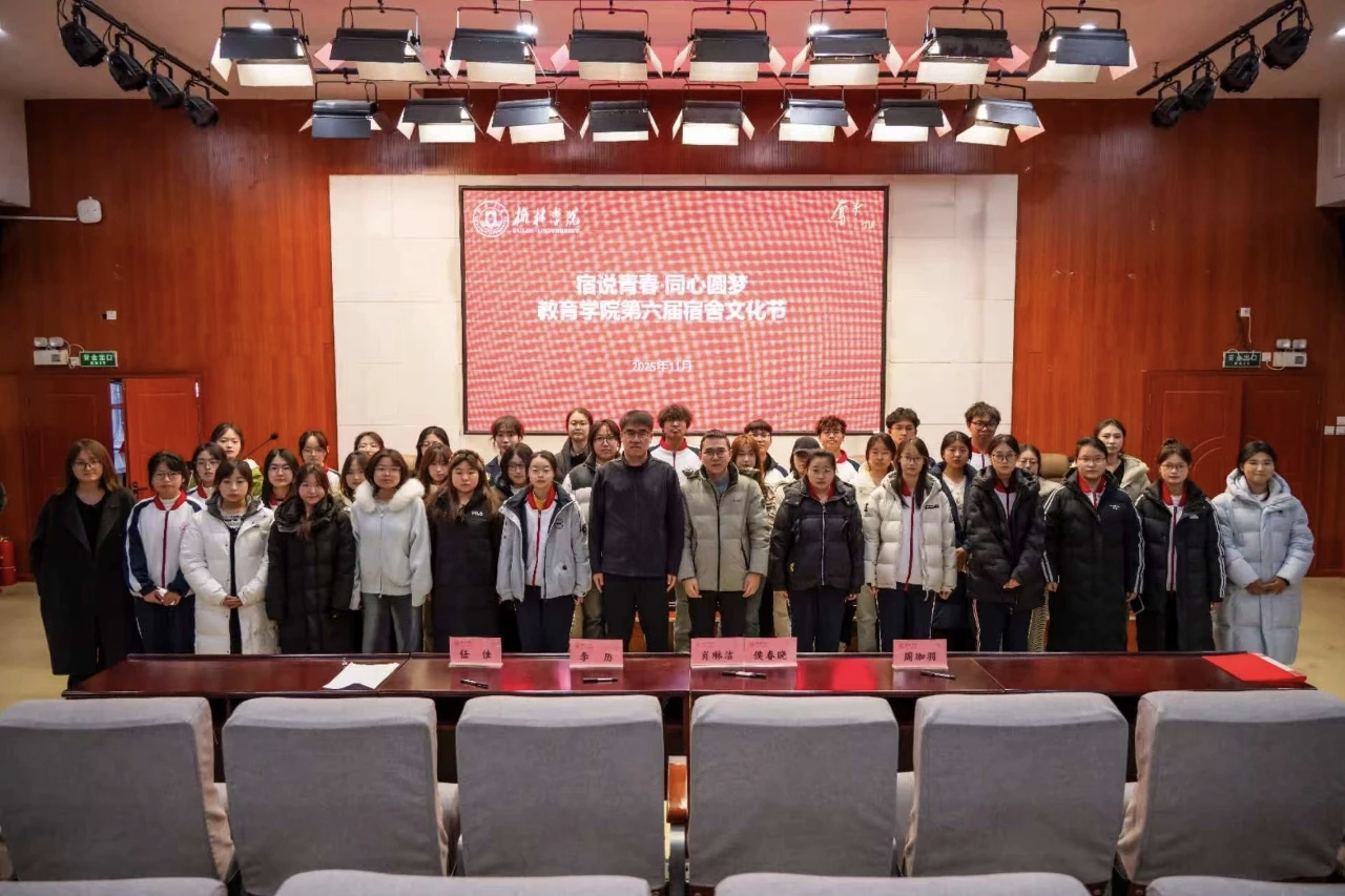 为深入贯彻习近平总书记关于教育的重要论述,扎实落实立德树人根本任务,以“五乐育人”理念为引领,深化学生社区文化建设,凝聚校院协同、师生共建的育人合力,教育学院于11月21日在逸夫楼一楼报告厅举办“五乐”育人系列活动之“宿说青春·同心圆梦”最美宿舍评选活动,生动彰显宿舍文化底蕴与青年奋斗风采。教育学院党总支副书记肖琳洁、党总支秘书侯春晓、团总支书记李历,学生会主席团代表周珈羽、任佳应邀莅临现场担任评委,霍思敏同学担任主持人。