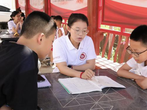 社会志愿服务:投身社会服务,践行青年担当 暑期“三下乡”与“返家乡”社会实践活动中,教育学院学子将师范生专业技能与美育、智育深度融合。 团队走进乡村学校,将音乐、美术、手工等美育课程带入课堂,同时结合趣味科普、阅读引导等智育内容,用专业所学为乡村孩子带去别样的课堂体验。在服务中锤炼教学本领,在奉献中践行教育初心。