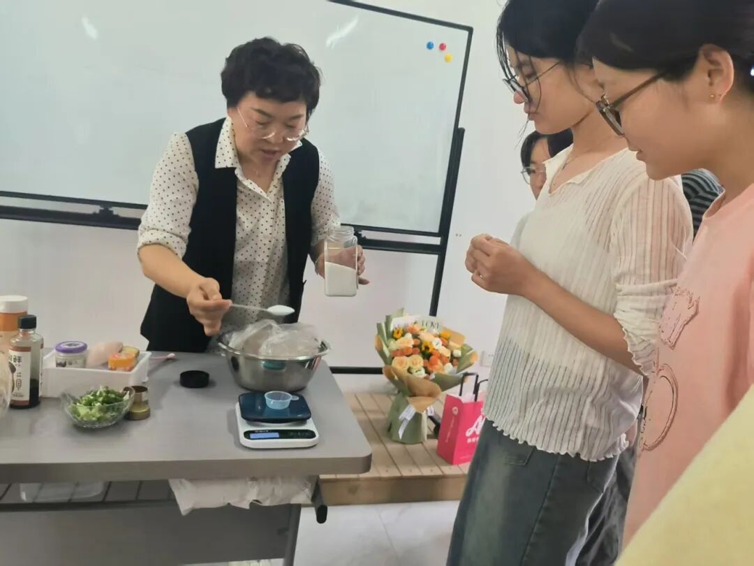 座谈结束后,烹饪实践环节正式拉开帷幕。刘冬梅老师作为烹饪主厨,先是耐心细致地为大家讲解食材——从馄饨皮的质感鉴别,到猪肉馅的调制,再到馄饨的经典包法,每一个细节都讲解得清晰透彻。