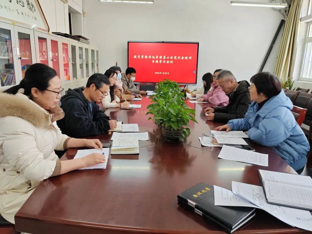 为进一步推动学校第二次党代会精神走深走实,增强学院全体教师的内生动力,向着特色鲜明的一流应用型大学建设新篇章不断奋发前行。1月20日上午,教育学院在2210会议室召开了专题会议学习传达学校第二次党代会精神,学院科级以上干部、各支部书记及教研室主任参加会议,党总支书记高竹莲主持会议。